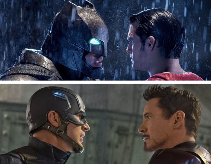 В 2016-м фанаты супергеройского кино ликовали: сразу 2 любимые киновселенные пополнились новыми частями. Казалось бы, «Бэтмен против Супермена: На заре справедливости» и «Первый мститель: Противостояние» создавались разными людьми, но зрители заметили, что фильмы очень похожи и завязками истории, и сражениями, и концовками.